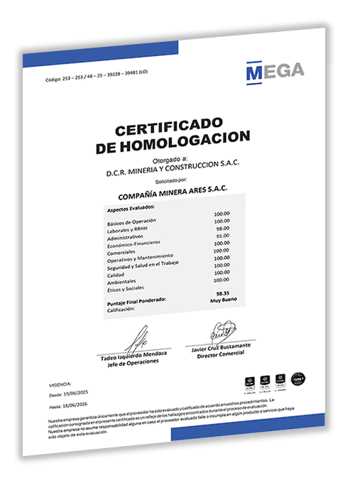 Certificado de homologación D.C.R. Mineria Y Construccion S.A.C. - ARES